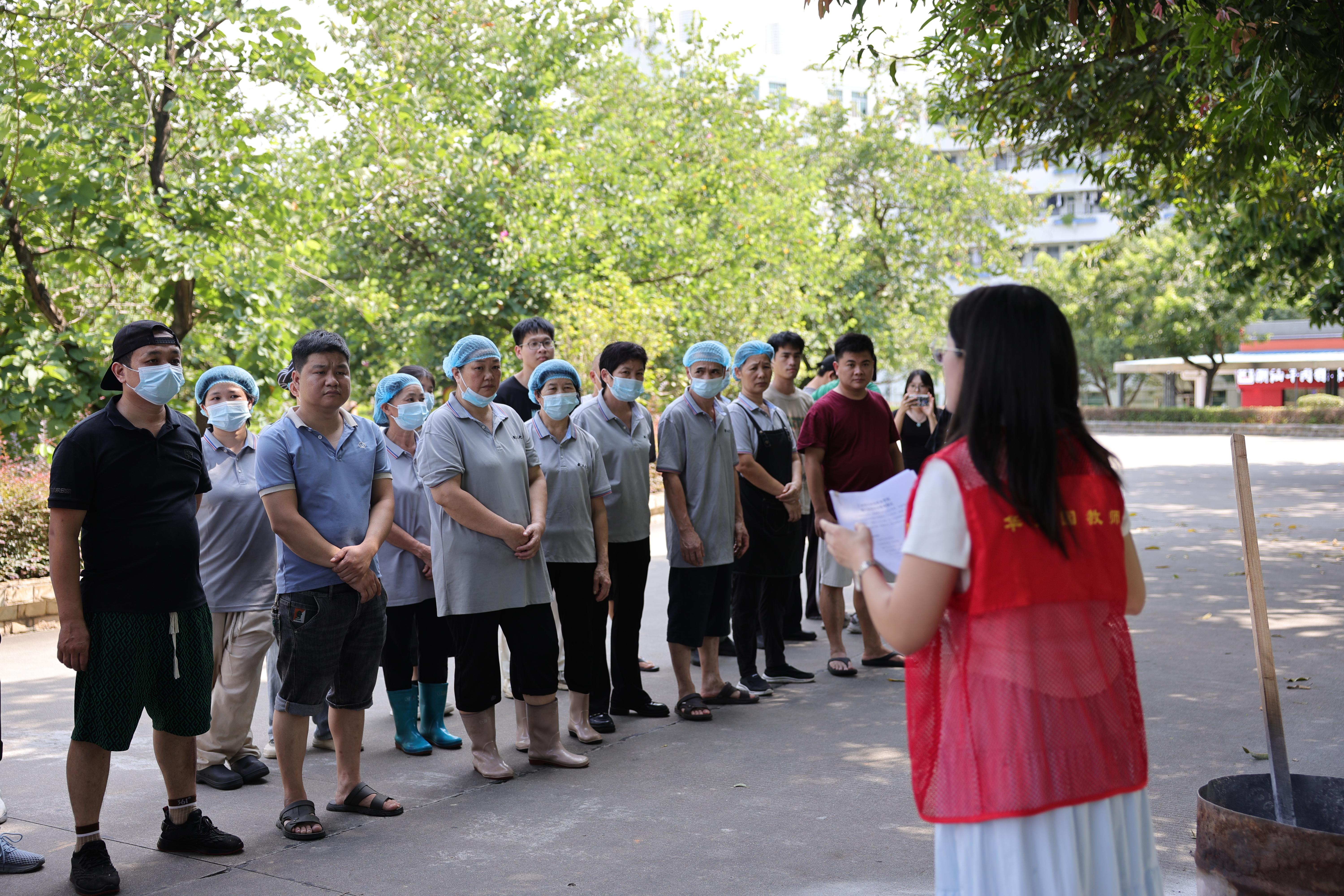 演练内容包括火灾疏散、灭火器使用、消防水带操作等环节。在模拟火情场景中,饭堂后勤管理人员迅速有序地撤离至安全区域,并在消防专员的指导下实操灭火器材,掌握了初起火灾的扑救方法。