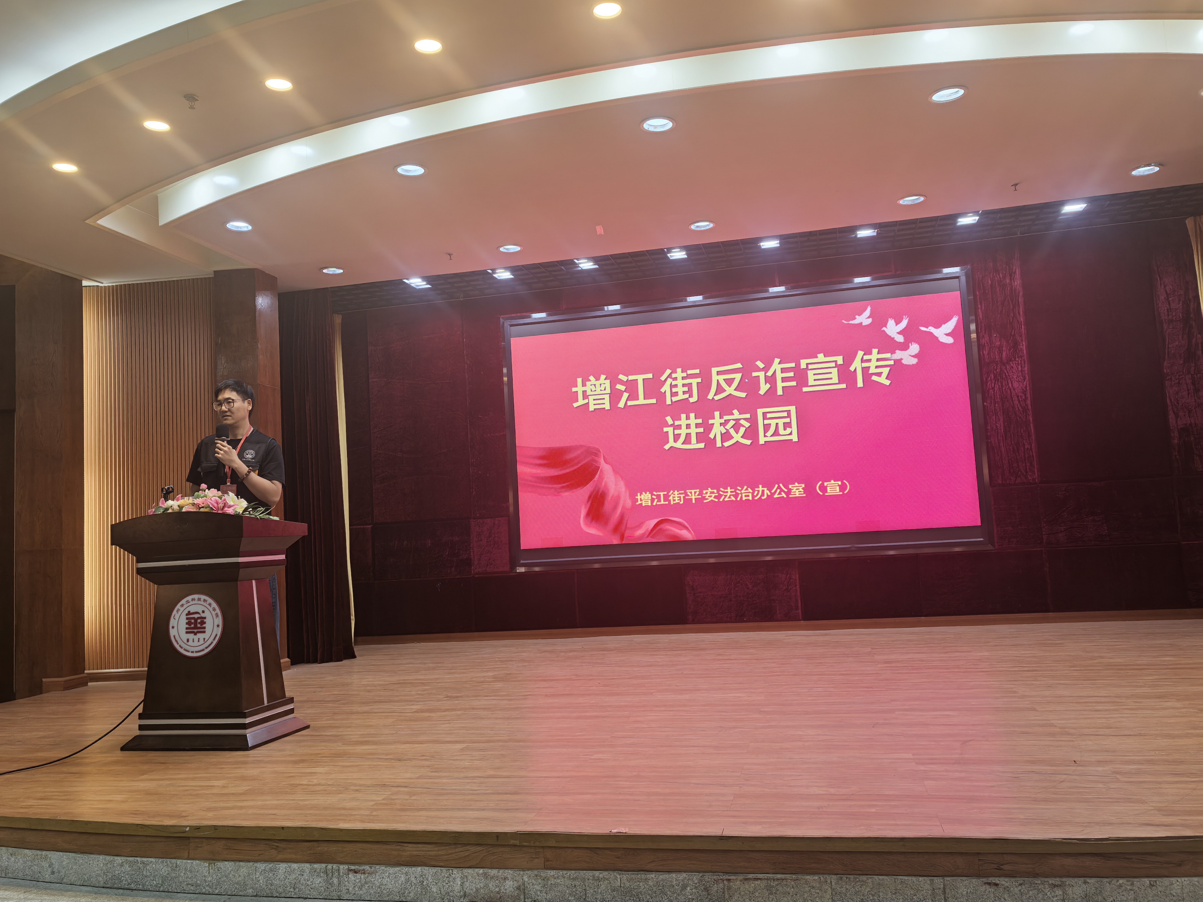 为进一步提升我校学生防范电信网络诈骗和识毒、防毒、拒毒意识,筑牢校园安全防线,4月7日,我校特邀增江街道工作人员陈世瑜,在东区图书馆1号报告厅开展反诈及禁毒宣传专题讲座,众多学生代表到场参与学习。