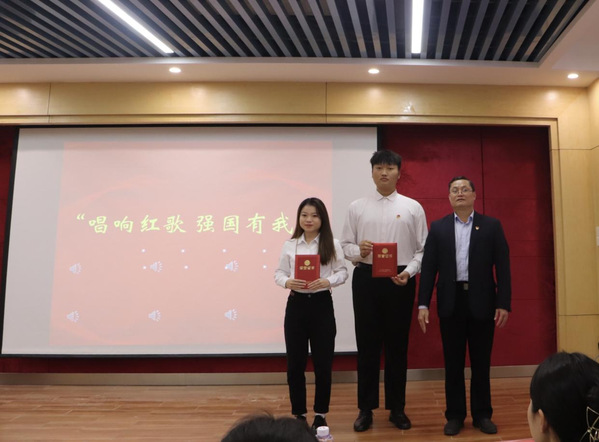 为通过歌唱红色经典,挖掘红色精神,培育爱国主义情感,展示大学生的才艺和风采,2023年12月19日晚,健康学院直属党支部举行大学生“唱响红歌,强国有我”歌唱比赛。健康学院院长雷毅雄,直属党支部书记孟允煌、专职副书记刘伟鑫、宣传委员杨敬博、组织委员冼嘉祺,中医药学院直属党支部宣传委员曾玉梅、组织委员郑洁仪以及健康学院学生党建小组参加了这次活动。