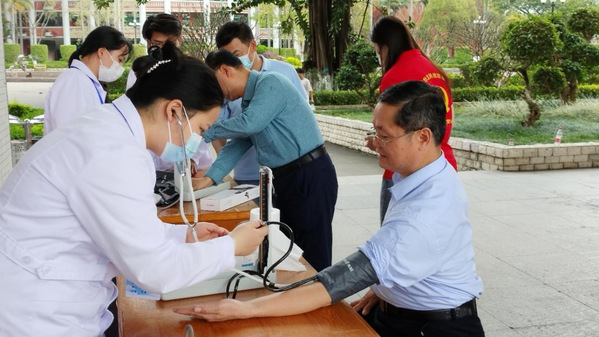雷毅雄院长带领同学们为师生测量血压,并根据每个人的具体情况给予针对性的健康建议,解答师生们的疑问并及时普及高血压的危害、预防措施以及日常生活中如何控制血压等知识。