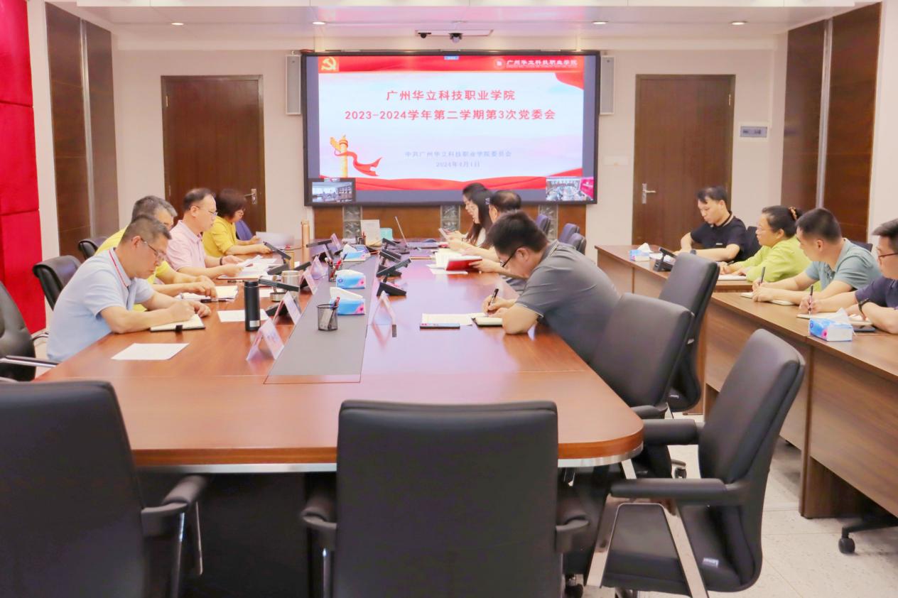 4月1日下午,广州华立科技职业学院召开了本学期第三次党委会,第一议题组织学习习近平总书记用“六个如何始终”对大党独有难题作出的系统阐释。党委书记陈良声主持领学并提出党委学习贯彻意见,党委副书记、副校长、纪委书记王洪艳谈学习体会,其他同志作研讨发言。陈德清校长及其他党委委员、党委办公室、学校办公室、纪委办公室等主要负责人参加学习,云浮校区通过视频连线参加。