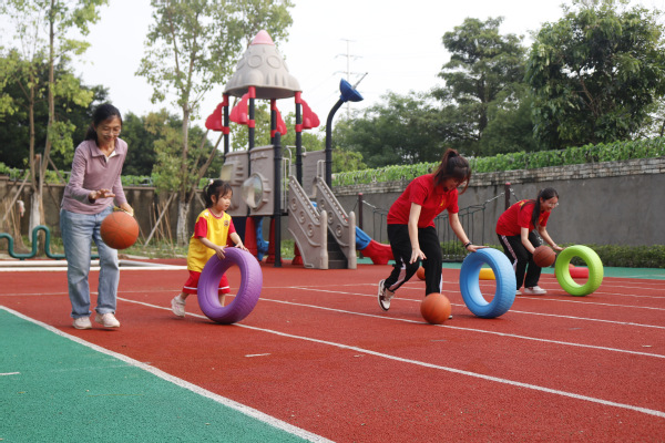阅读活动之后,教育学院全体志愿者积极协助华立狮宝宝幼稚园老师开展了一系列亲子户外体育活动。此次亲子活动设置各类趣味运动项目,如障碍跑、合乐运西瓜(篮球)、玩转沙包、欢乐运球比赛等,让孩子们在运动中体验快乐。在活动过程中,志愿者个个忙得大汗淋漓,但看到各位家长和小朋友在紧张又刺激的接力赛中玩得如此开心和尽兴,他们的脸上也绽放出灿烂的笑容。