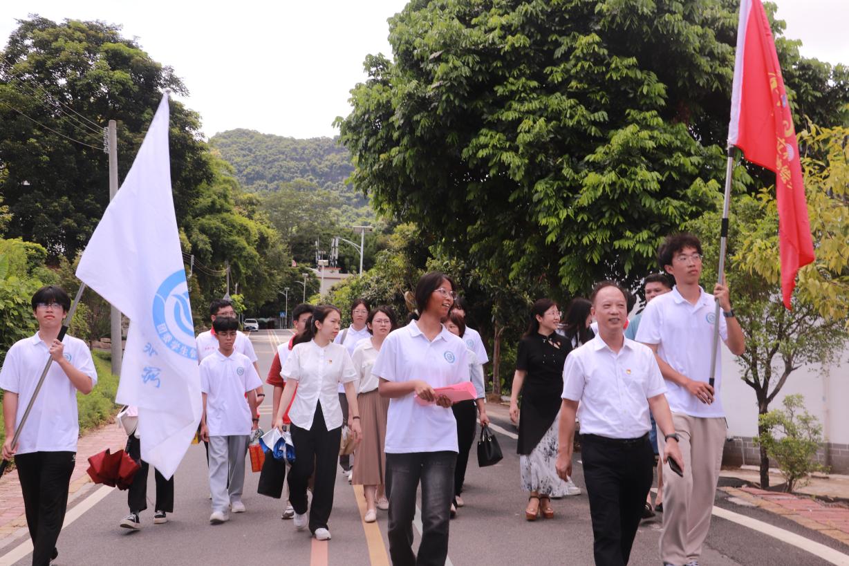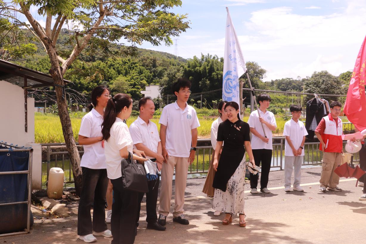 为贯彻落实广东青年大学生“百千万工程”突击队行动,进一步明确服务目标和工作重点,推动“百千万工程”工作走深走实。7月15日上午,学校党委书记陈良声、党委副书记副校长王洪艳等一行赴派潭镇密石村调研指导大学生暑期社会实践工作,为正在开展暑期社会实践活动的“百千万工程”奇思妙绘突击队师生们送上解暑慰问品,并在密石村村委会议室开展“百千万工程”交流座谈会。学校党委组织部组织科副科长陈晓薇、团委副书记林静珊、计算机信息工程学生党总支专职副书记朱志豪陪同走访。派潭镇党政综合办公室主任姚利利、派潭镇密石村村委会副主任黄艺华、以及“百千万工程”奇思妙绘突击队全体师生出席会议。