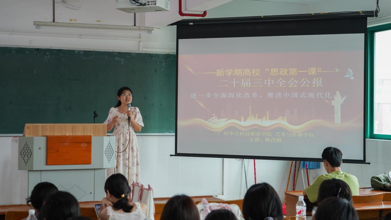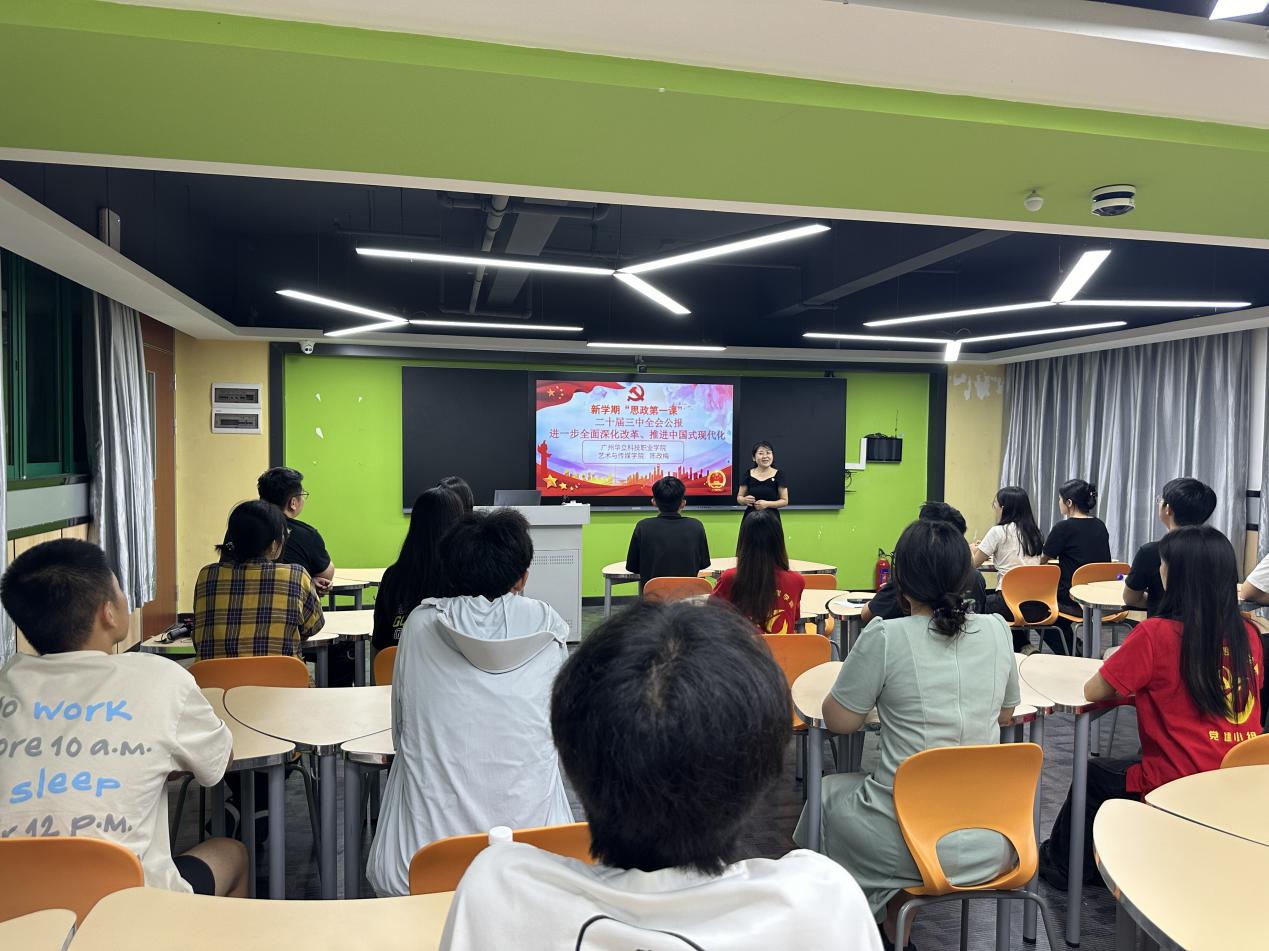 为深入学习习近平总书记在党的二十届三中全会上的重要讲话精神和《中共中央关于进一步全面深化改革 推进中国式现代化的决定》提出的重大举措,9月14 日下午,艺术与传媒学院党总支书记陈改梅为2024级新生分专业班级带来了一堂别开生面的开学思政第一课。此次课程旨在引导大学生深刻学习理解全会精神,明确自身在新时代的责任与担当。