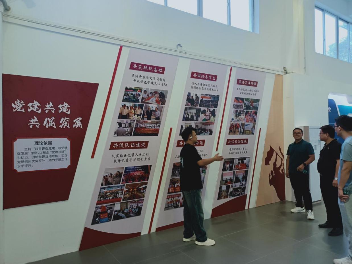 接下来宋书记与全体学生共同参观了广州粤嵌公司的党员活动长廊。在党员活动长廊中,宋书记高度赞扬了粤嵌公司党支部的党建共建、共促发展理论,希望双方坚持“以共建促党建、以党建促发展”原则,以校企“党建共建”为动力,创新党建活动载体,实现党组织间优势互补,助力党建工作水平提升。