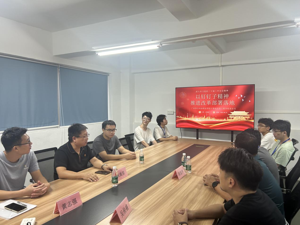 为深入学习贯彻党的二十届三中全会精神,加强党建共建深度融合,2024年9月25日下午,计算机信息工程学院党总支书记宋海泉带领教师党支部书记黄志强等一行到学院党建共建基地——广州粤嵌通信科技股份有限公司为我院校外教学学生开展以“深入学习党的二十届三中全会精神—以钉钉子精神推进改革部署落地”为主题的宣讲活动。