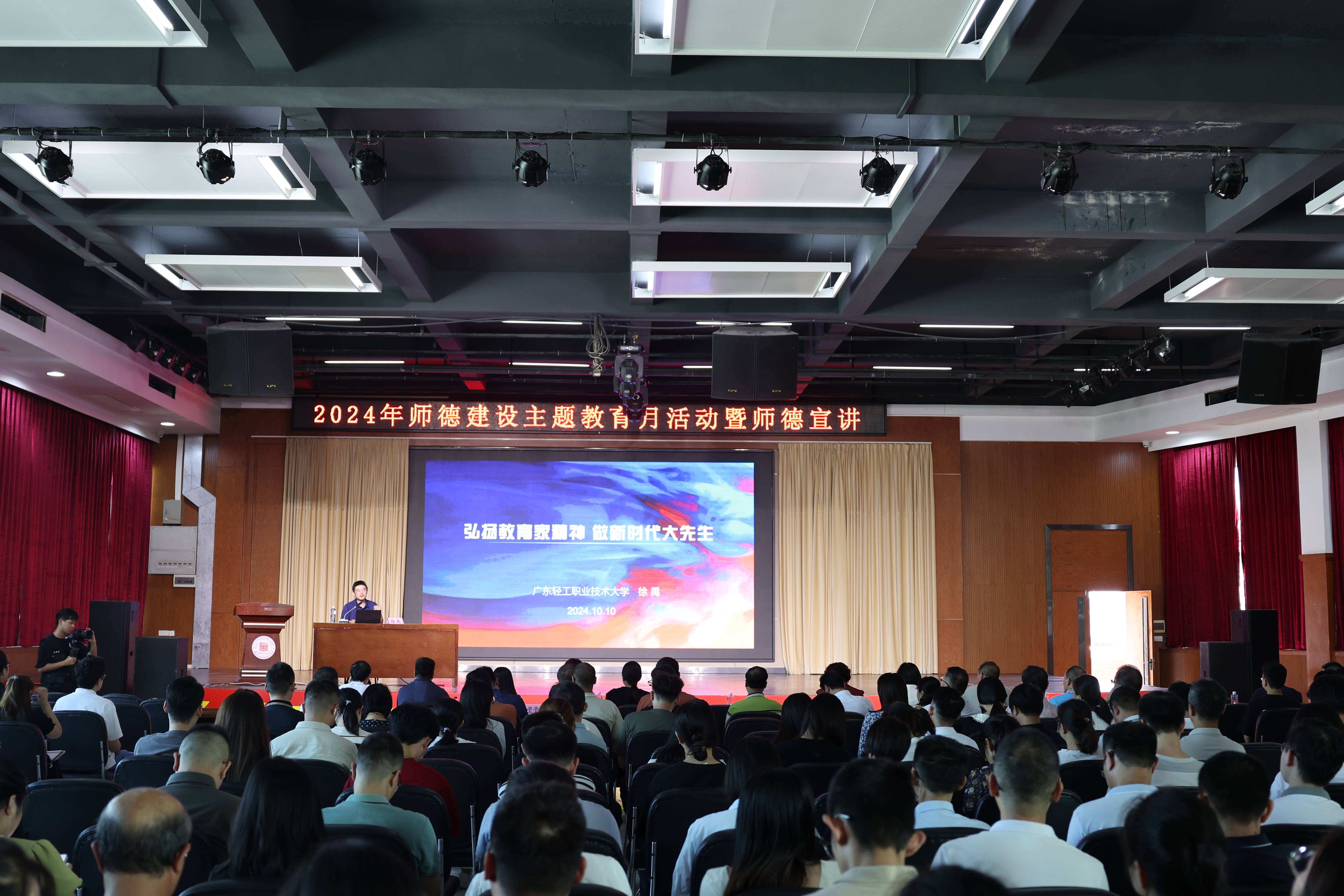 10月10日下午,我校特邀2024年感动广州的优秀教师、广东轻工职业技术大学艺术设计学院副院长徐禹教授作《弘扬教育家精神 做新时代大先生》专题讲座。各职能部门负责人及全体教职工共500余人共同聆听了讲座。讲座由党办主任石朝阳主持。