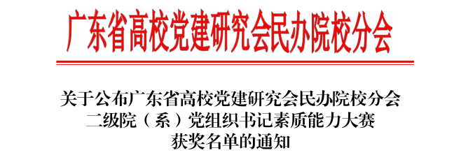 2024年11月29日至30日,由广东省高等学校党的建设研究会民办院校分会主办的2024年广东省民办高校二级院(系)党组织书记素质能力大赛在广州华夏职业学院举行。本次共有50所民办院校派出选手参加现场比赛,我校电力与智能制造学院党总支书记褚玉峰获得三等奖。