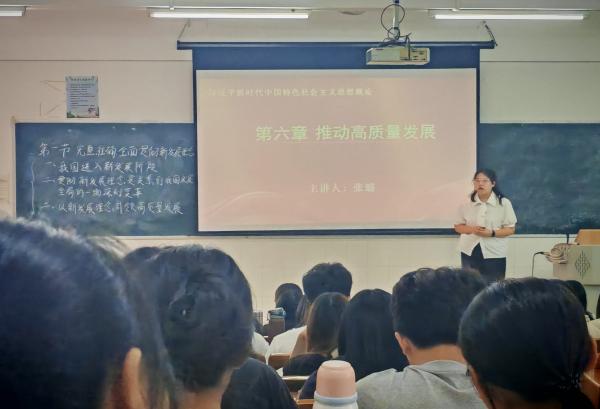 在图书馆602教室,周志平教授听取了马克思主义学院青年教师张璐主讲的《习近平新时代中国特色社会主义思想概论》课程。张老师以“完整准确全面贯彻新发展理念”为主题,通过理论阐释与实践案例结合的方式,系统讲述新发展理念的科学内涵与时代价值。周志平教授听完课后对教学给予高度评价,认为张老师授课内容正确、方法灵活、环节全面、时间把控到位,展现了青年教师扎实的教学基本功。同时,周教授提出,思政课是讲道理的课,要注意理论的深度和逻辑的严谨性,把道理讲得更清楚。