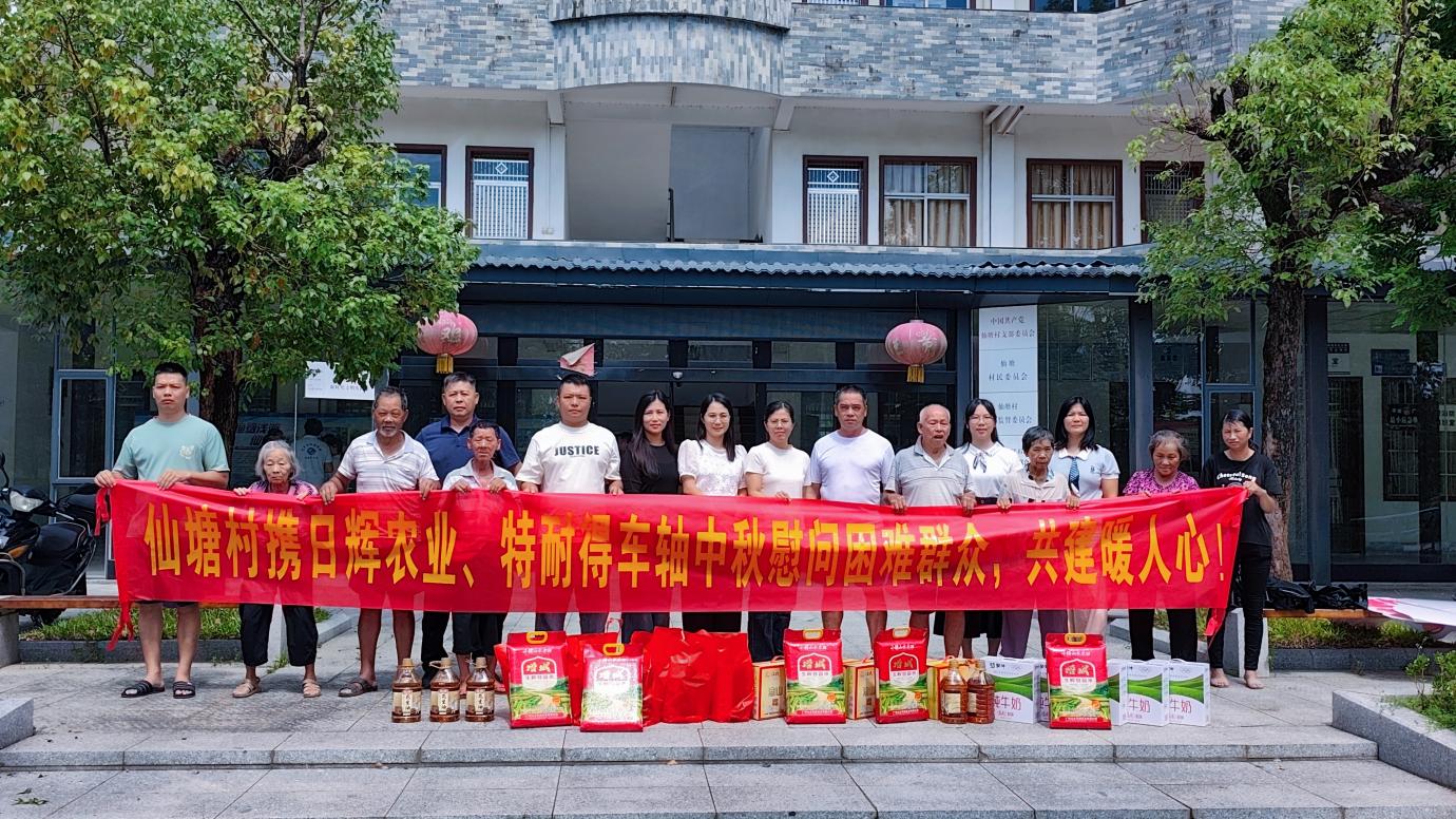 上午,仙塘村支委联合广州市日辉农业发展有限公司、广州市特耐得车轴有限公司两家企业组建的“党建慰问服务队”兵分两路开展关怀行动:一路为全村60岁以上长者集中派发中秋月饼,用贴心问候传递节日祝福;另一路则走访慰问村内老党员和困难群众,为他们送去米、油、奶、月饼等慰问品,倾听老党员的入党故事,了解困难家庭的实际困境,以实打实的帮扶践行“我为群众办实事”的初心。