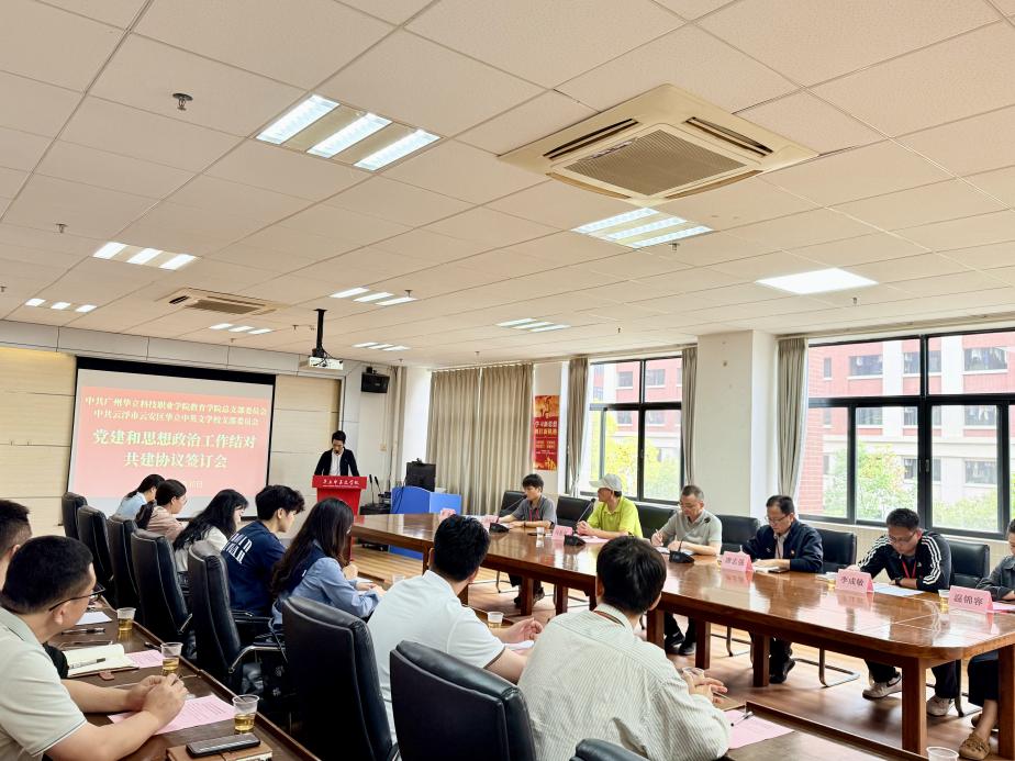 2025年10月30日下午,教育学院党总支与华立中英文学校党支部在华立中英文学校会议室开展党建与思想政治工作结对活动。教育学院党总支书记马岳良,华立中英文学校校长余桂林、党支部书记唐志强及全体党员教师共同出席了活动。活动由教育学院党总支组织委员程豪主持。