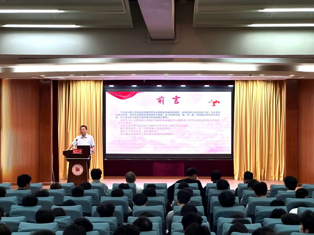 高尧来副书记围绕“回顾历史了解中国发展成就、中国经济快速发展的成功密码、认清形势站在历史新起点、奋发图强争做民族脊梁”等四个方面带领同学们回顾了中国革命与改革开放历史:从旧中国的一穷二白到新中国GDP超越日本成为世界第二大经济体;从开国初的百废待兴到新中国的华为遥遥领先、太空探索的辉煌成就;再到国防与环境建设的巨大改善,全方位展示了改革开放以来取得的伟大成就。随后,他深刻阐释了中国经济高质量发展的成功密码,指出历史经验已经并将继续证明,没有中国共产党的领导,民族复兴必然是空想,是历史选择了中国共产党。面对百年未有之大变局,他向青年学子发出“奋发图强,争做民族脊梁”的号召并提出了两点殷切期望:一是练就过硬本领,要认真学好专业知识与技能,更要勇于创新创造,将创新理念深度融入学习之中。二是弘扬奋斗精神,要保持艰苦奋斗的优良传统,做到不怕苦、能吃苦、甘吃苦,以踏实肯干的作风,在新时代的征程中贡献青春力量。