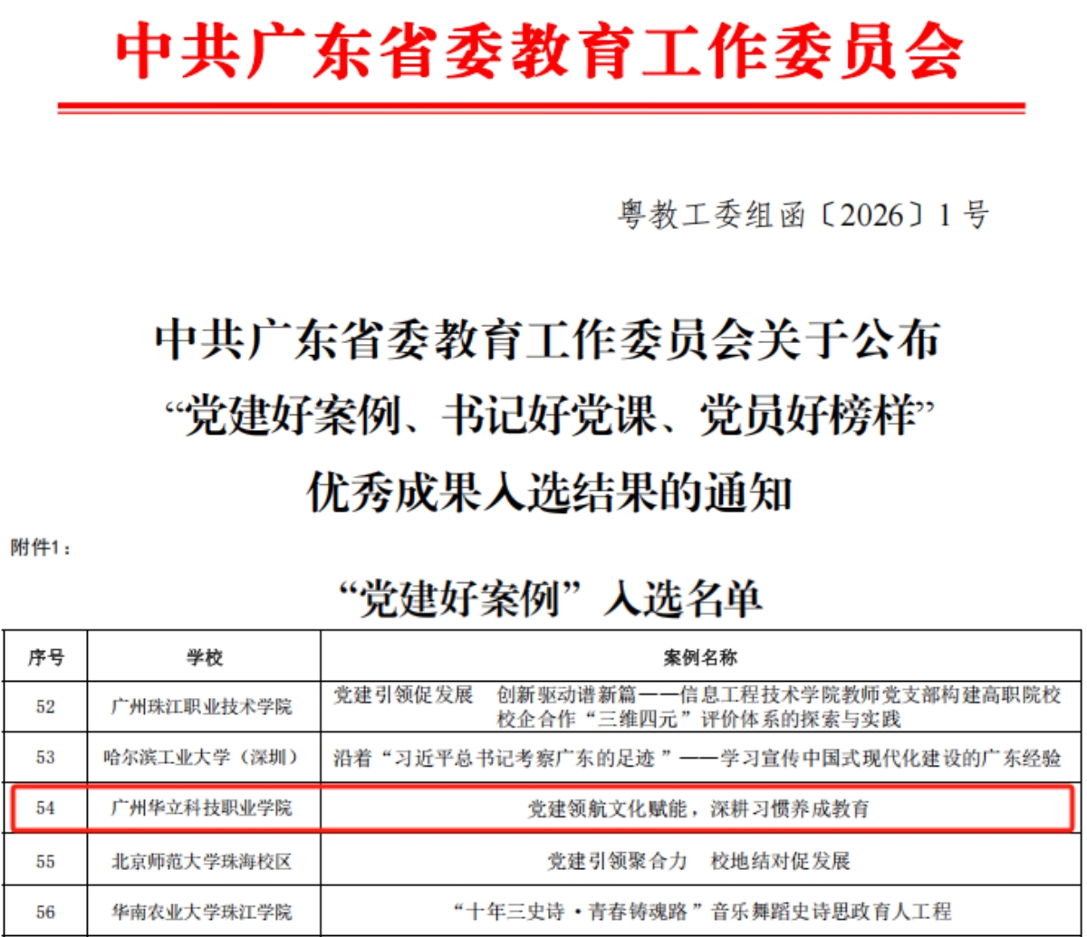 1月15日,中共广东省委教育工作委员会公布“党建好案例、书记好党课、党员好榜样”优秀成果入选结果。我校电力与智能制造学院党总支书记褚玉峰同志申报的《党建领航文化赋能,深耕习惯养成教育》案例,成功入选“党建好案例”名单。