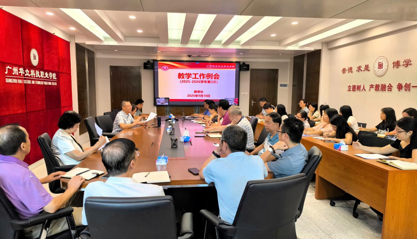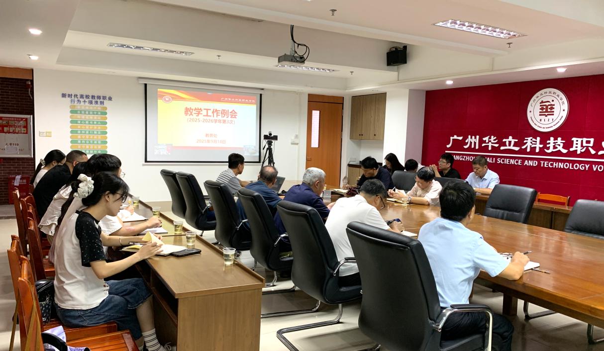 2025年9月18日上午,华立职院在行政楼305会议室召开2025-2026学年第三次教学工作例会。会议由陈显强副校长主持,两校区教务处、教学督导办公室、实训中心、各二级学院负责人、教科研主任及其他教学相关人员出席参会,会议围绕实训室建设、教风建设、专业建设等重点工作展开深入研讨。