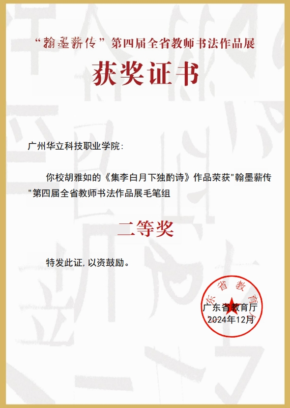 “翰墨薪传”第四届全省教师书法作品展 二等奖