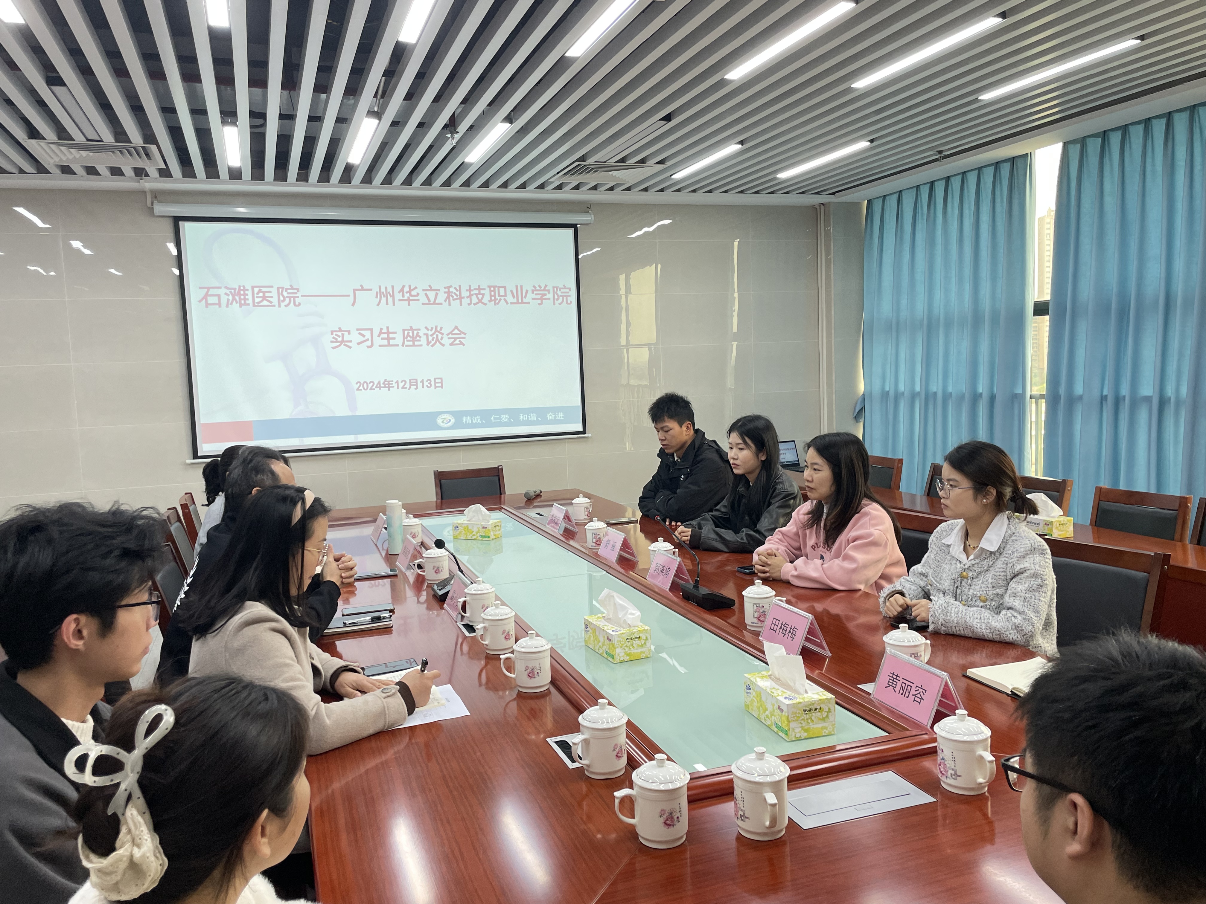 在实习医院,院方负责人热情接待了教师一行,石滩医院医务科陈小针科长对我院实习生表示了高度的赞扬,并充分肯定了实习生的工作表现和态度,我院校外教学负责人田梅梅老师也对石滩医院为学生提供的实习机会和实践指导表示衷心感谢,并代表学院向实习生们送上最诚挚的关心与问候。此外,老师们与实习生们展开了亲切的交流。实习生们分享了实习过程中的所学所感,从初入临床的紧张懵懂到逐渐熟练掌握各项操作技能,他们在带教老师的悉心指导下不断成长,深刻体会到理论与实践相结合的重要性。院方领导和老师们认真倾听,鼓励同学们珍惜实习机会,继续保持积极的学习态度,在实践中积累经验,提高专业素养,同时也要注重自身的身心健康,平衡好工作与生活的关系。