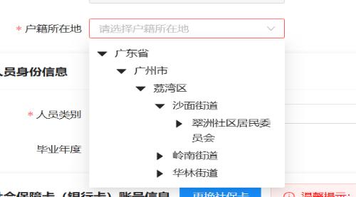 7.户籍所在地:下拉框选择,务必按照户口本首页信息填写,格式为xx省xx市xx区/县