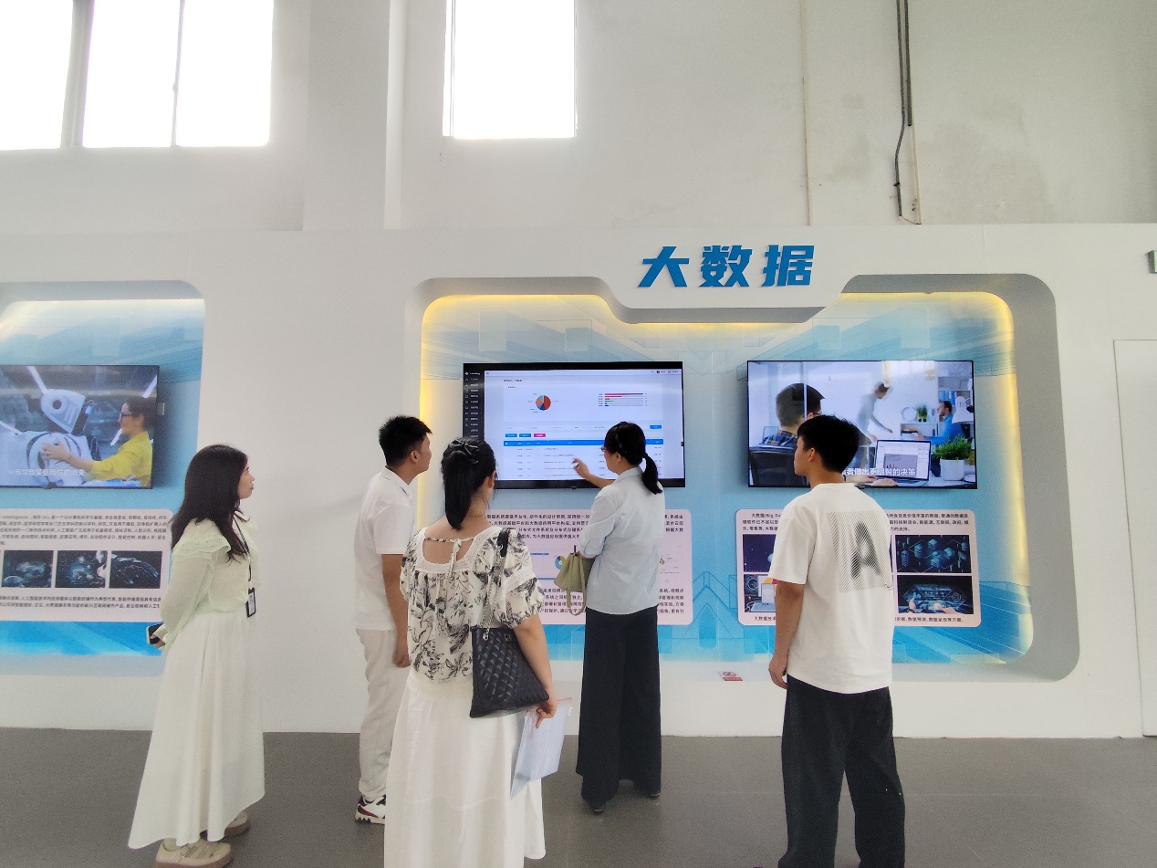 随后,老师们参观了企业科技成就展板,并重点介绍了其在大数据技术领域的创新应用。钟经理指出,公司已将大数据技术与教学平台深度融合,打造出能智能分析学生各阶段学习情况、为其定制个性化学习计划的智能平台。同时,他感谢我院持续为企业输送优秀人才,并承诺将继续为实习生提供最优质的教学资源。
