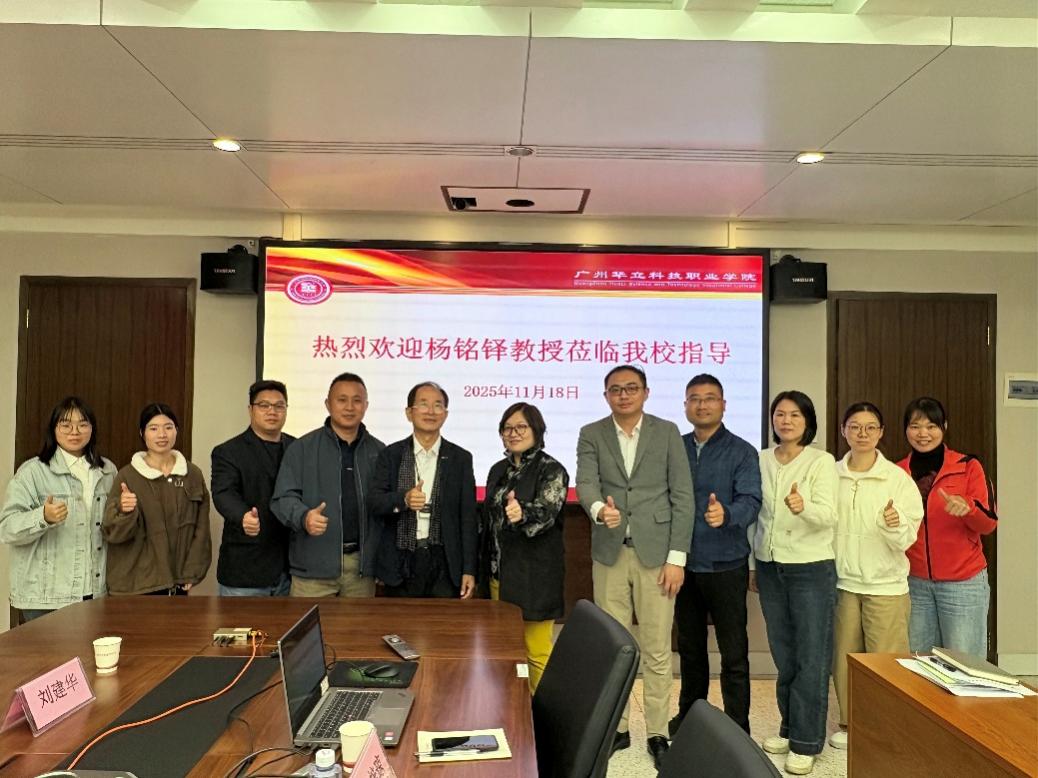 为深化烹饪专业内涵建设、推进“智慧健康·粤菜研究院”落地见效、赋能职业教育高质量发展,11月18日上午,广州华立科技职业学院特邀教育部餐饮行指委副主任,中国烹饪协会特邀副会长,国务院特殊津贴专家杨铭铎教授莅临学校开展专题交流座谈会与实地指导。学校常务副校长马俊、人事处处长钟文浩、生活学院院长李春洪、教科研副主任付炎及生活学院广州校区全体教师全程参与,共同聆听教育名家教诲,共话专业发展与育人蓝图。