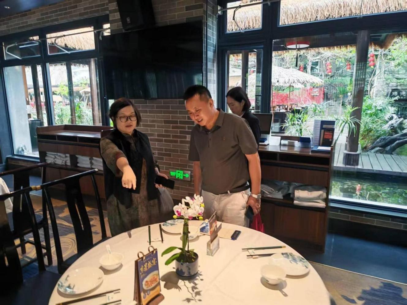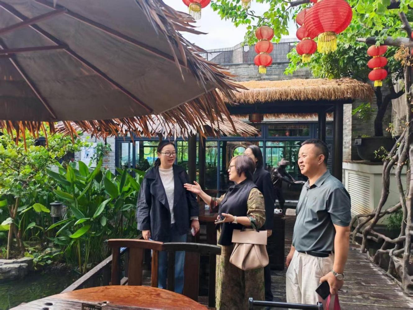 座谈结束后,廖明婕负责人带领马俊副校长一行参观顺德渔村华侨城旗舰店,实地走访门店中餐厅、户外花园用餐区、中空宴会厅、婚礼预约中心及渔村手信售卖区,了解门店运营模式与学生实习环境,廖总还准备了渔村特色手信给我校到访人员品尝。校领导对门店的硬件设施、服务品质与实习环境给予高度认可,进一步坚定了双方的合作信心。