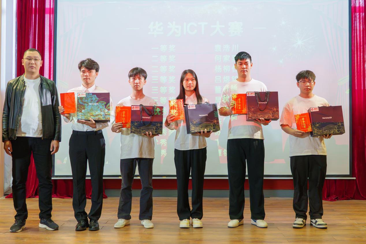 在随后举行的颁奖典礼上,大会依次对在华为ICT大赛、网站项目开发竞赛、全国大学生职业规划大赛三大赛事中荣获一、二、三等奖及优秀奖的同学进行了表彰。与会领导和企业嘉宾分别为获奖学生颁奖,现场掌声不断,气氛热烈。大会还颁发了“优秀指导老师”与“优秀组织奖”,感谢他们在赛事组织与学生培养中的辛勤付出。