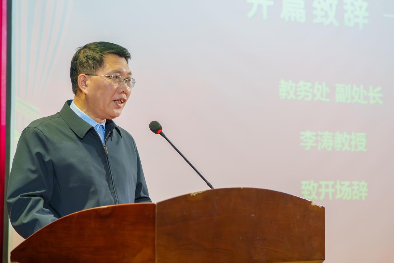 表彰大会在庄严的国歌声中拉开帷幕,教务处副处长李涛教授为大会致开幕辞。他充分肯定了计算机学院在深化产教融合、培养高素质技术技能人才方面取得的显著成效,并对获奖师生表示热烈祝贺。李处长指出,产教融合是现代教育发展的必由之路,希望学院继续携手优秀企业,将产业前沿技术、真实项目与教学过程深度融合,构建校企协同育人的新生态,勉励同学们珍惜韶华、锤炼技能,在未来职业道路上绽放光彩。