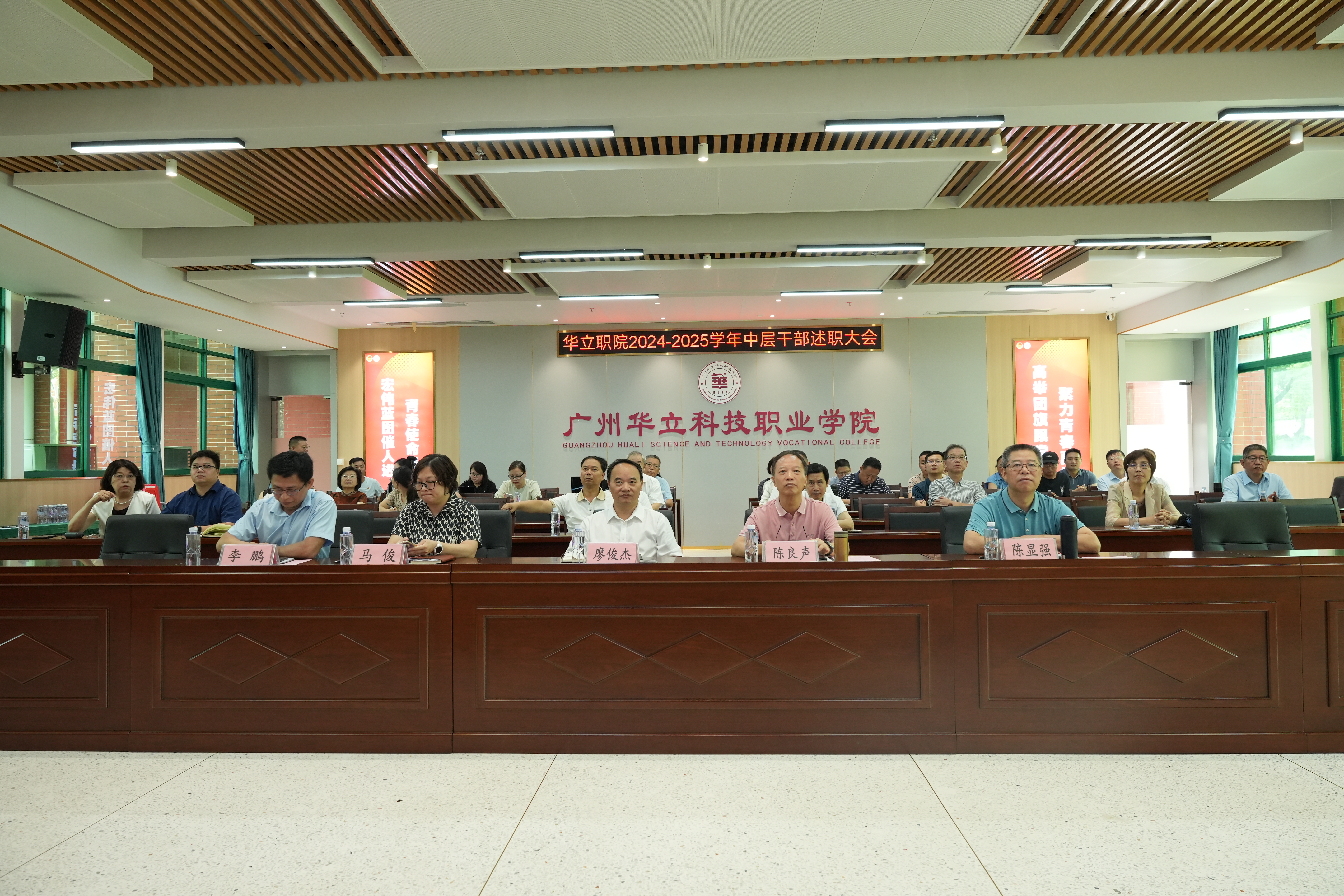为全面总结2024-2025学年工作成效,强化中层干部责任担当,深入贯彻《教育强国建设规划纲要(2024—2035年)》和党的二十届三中全会精神,我校于7月16日召开中层干部述职大会。会议设广州校区图书馆104主会场,云浮校区图书馆分会场同步连线。校领导及全体中层干部参加,会议由常务副校长马俊教授主持。