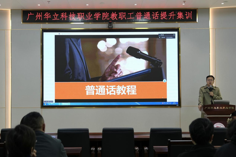 为提升教职工普通话应用水平,强化教育教学语言规范,近日,广州华立科技职业学院开展教职工普通话提升集训。学校人事处处长钟文浩、艺术与传媒学院院长朱君到场参会,全校各部门教职工积极参训。