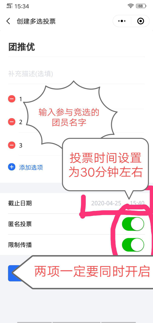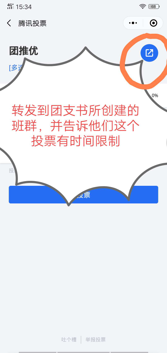 (3)与会团员对符合“团推优”条件的团员进行线上民主评议并用微信小程序腾讯投票进行投票并且由投票发起人截图唱票;(详细投票过程请根据附件四进行)
