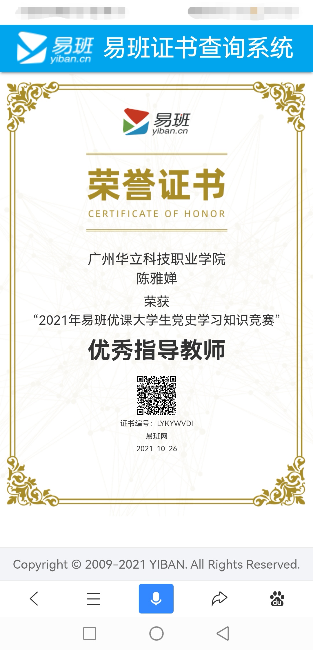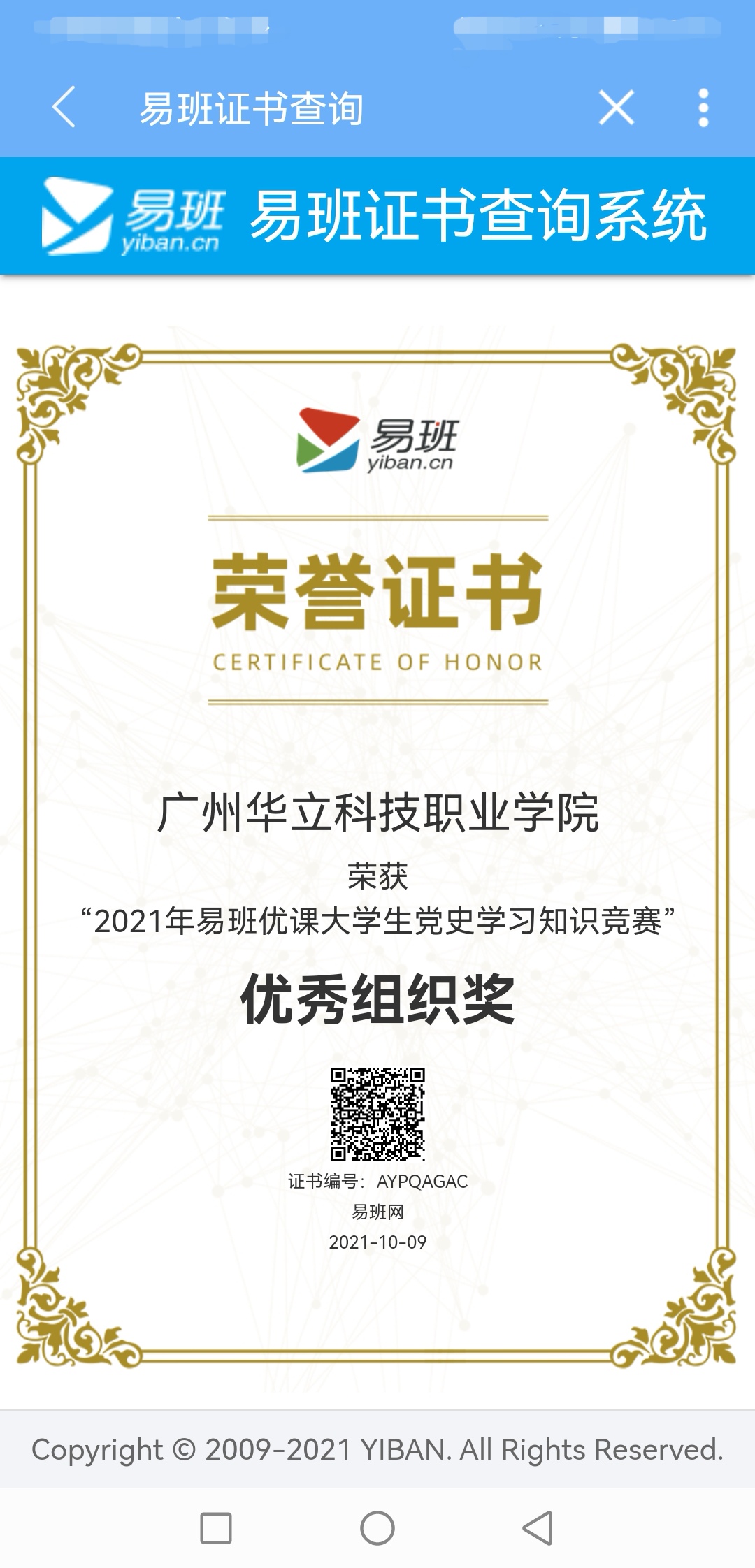 我校荣获“2021年易班优课大学生党史学习知识竞赛”《优秀组织奖》荣誉