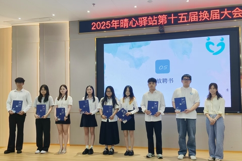 薪火相传,共启新篇。我校晴心驿站于2025年6月11日下午18时在图书馆104举行第十五届换届大会,参加本次换届大会的有晴心驿站指导老师何丽明老师,吴芷莹老师和陈昱奇老师,23级干部成员以及24级新任干部与干事。
