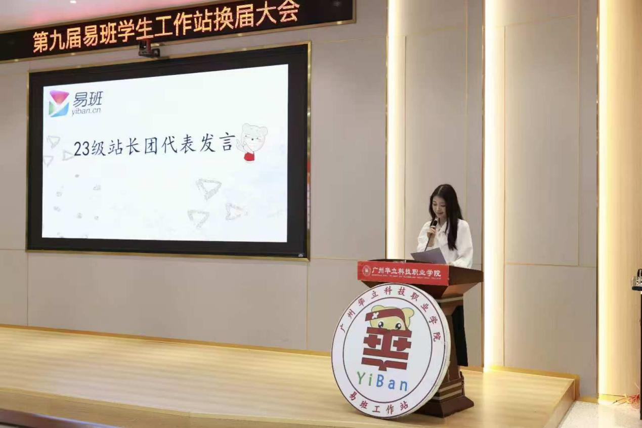 新任站长团代表温宝青上台发言表示,感谢学校领导、老师的信任与历任成员奠定的坚实基础。她表示易班不仅是信息化平台,更是连接师生的精神家园。