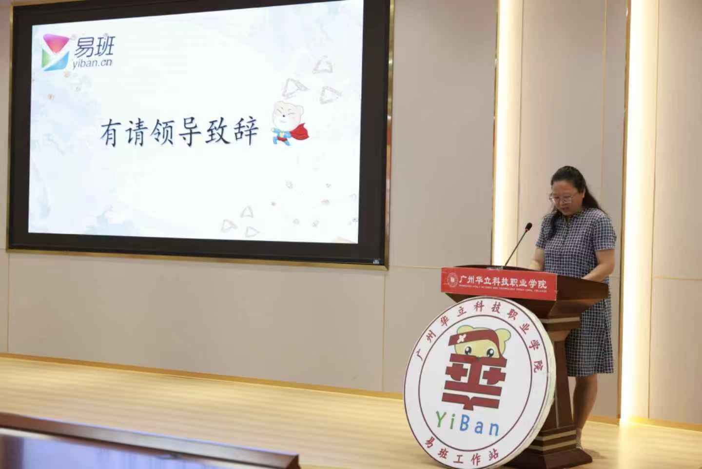 彭柳副处长致辞发言:很荣幸参加易班第九届换届大会,祝贺新一届干部,感谢23级干部付出。过去一年,易班坚持“立足师生,‘易’在服务”,作为桥梁取得不少成绩,这离不开老师和全体成员努力。她希望新一届干部牢记宗旨、服务为本、明确职责,团结协作,开拓创新,在华立职院书写精彩答卷,预祝大会圆满成功。