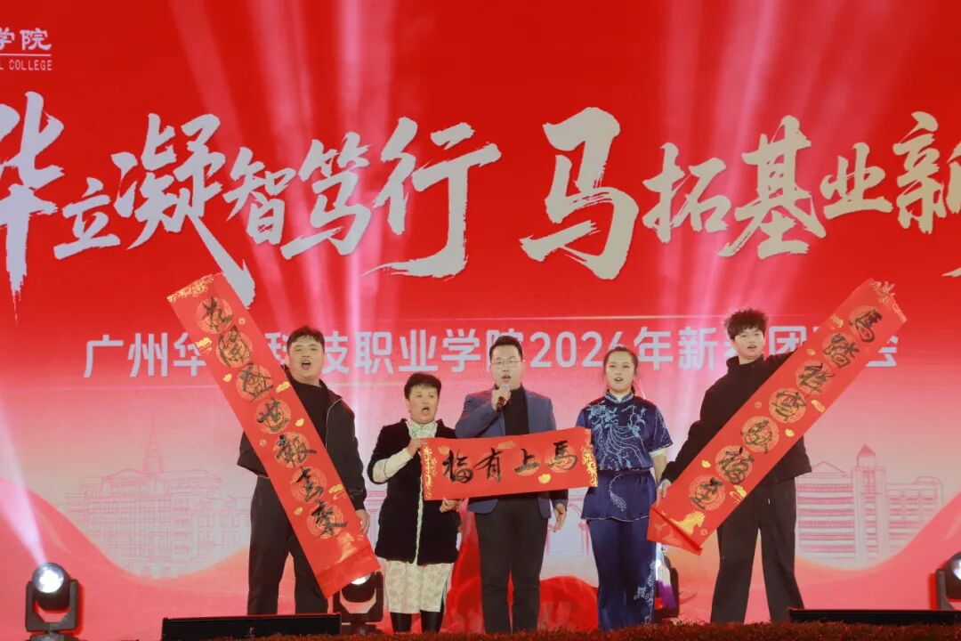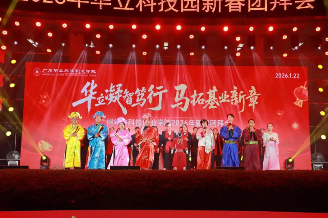 新春团拜会在广州华立科技职业学院艺术与传媒学院吕雅伦、健康学院梁瑞云两位老师的钢琴四手联弹《春节序曲》,经济管理学院与生活学院联合表演的《马舞辉煌》舞蹈节目中拉开帷幕。