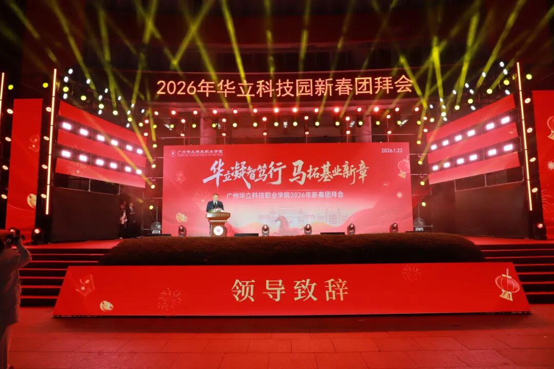 广州华立科技职业学院校长廖俊杰受董事长张智峰先生委托,在新春团拜会致辞。