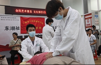 2.杏林惠民・中医药文化进万家活动。依托中医药协会和体育与健康管理协会,组织师生进社区、养老院、乡镇村开展义诊,提供体质辨识、推拿按摩理疗服务;同步开展中医药科普讲座、养生知识宣传,践行公益,弘扬中医药文化。