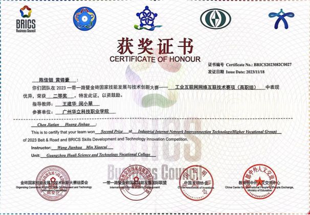 自2022年,计算机应用技术专业发展至今,组织学生参加省职业技能大赛、挑战杯、中国机器人及人工智能大赛、蓝桥杯全国软件和信息技术专业人才大赛、一带一路暨金砖国家技能发展与技术创新大赛等比赛。比赛获奖11项,其中,一等奖1项、二等奖4项、三等奖6项。