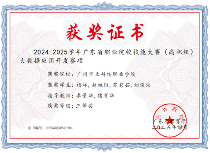 (图12 大数据应用开发(省赛)三等奖) |