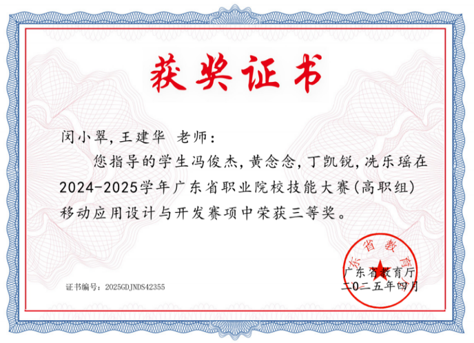 (图13 移动应用设计与开发(省赛)三等奖) |