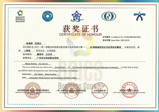 (图16 5G网络测试优化与应用技术全国二等奖) |