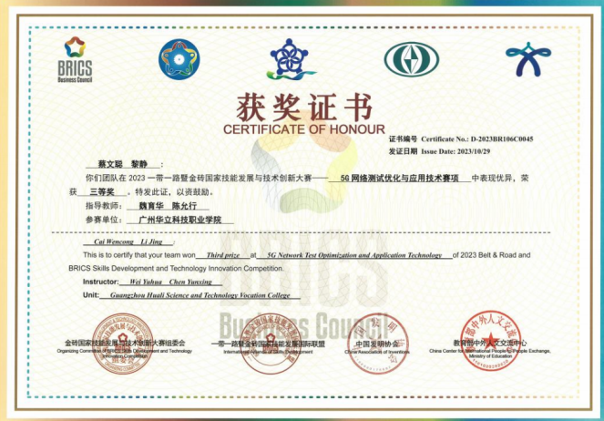 (图17 5G网络测试优化与应用技术全国三等奖) |