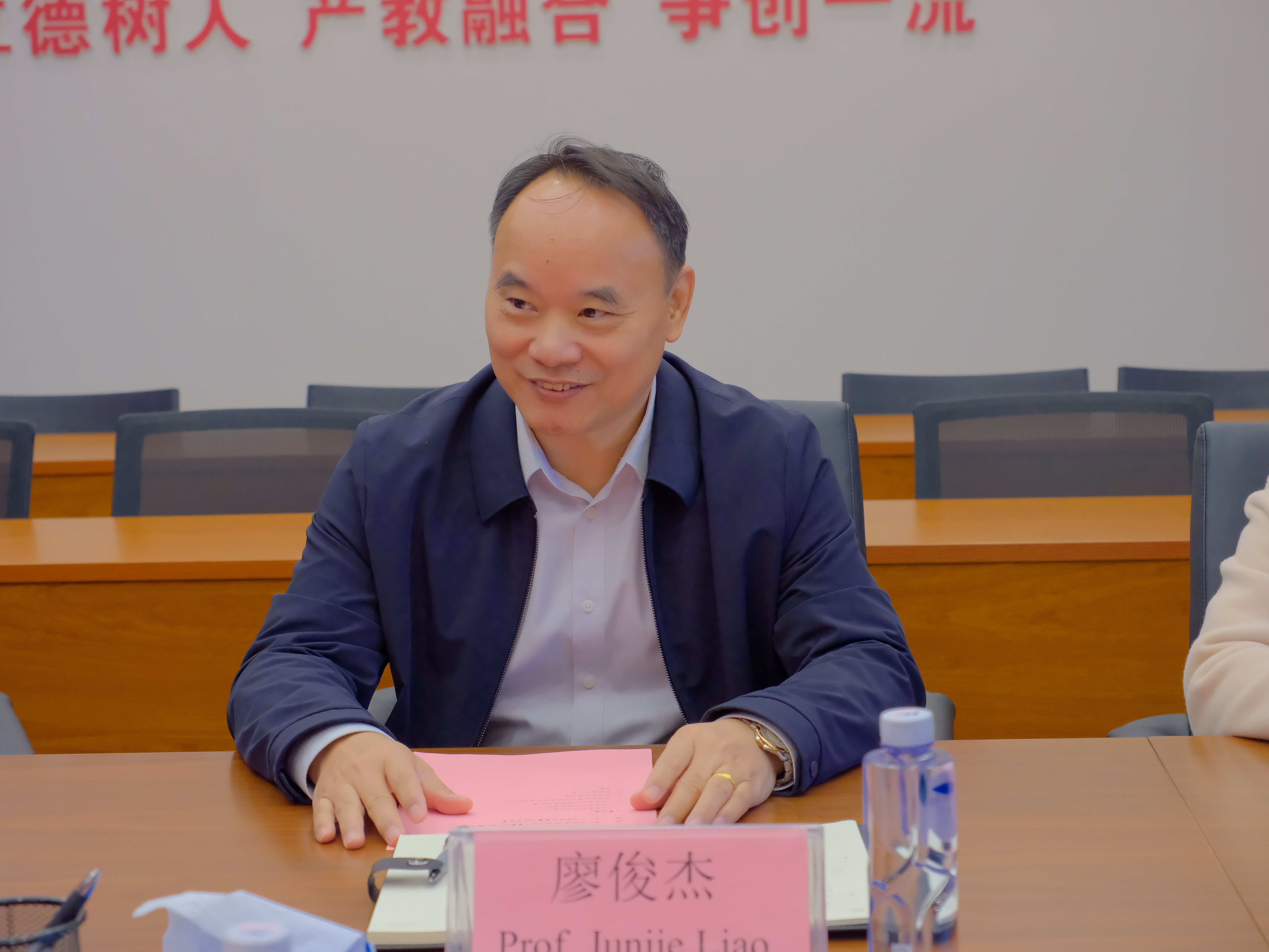 校长廖俊杰表示对大家的再次到访表示热烈欢迎,他指出本次代表团再次到访,不仅是对此前交流的肯定,更是携手共进的新起点。他期望,双方能基于各自发展实际与需求,推动合作迈向更专业、更精准对接的新阶段,将共识转化为实实在在的成果。