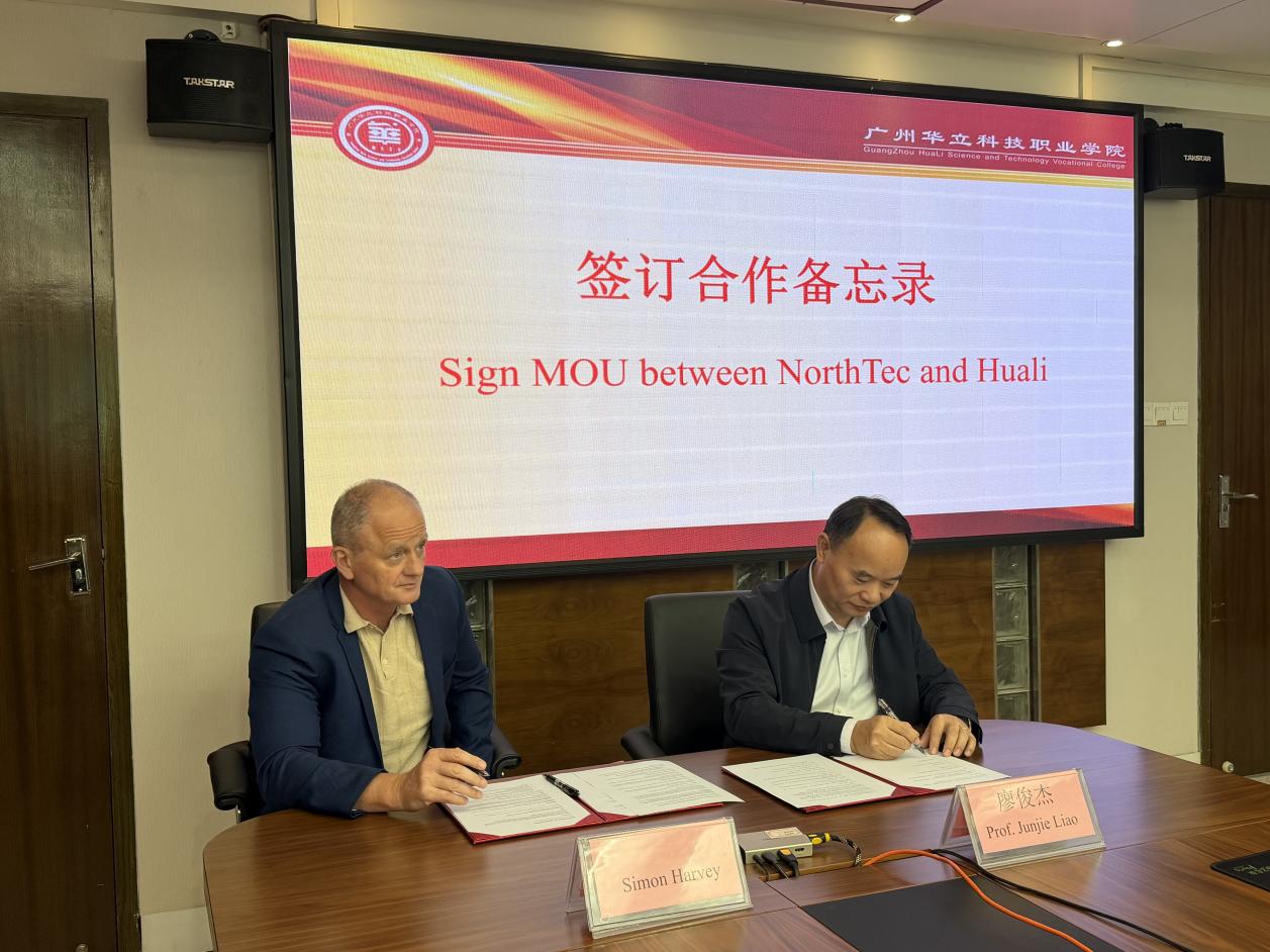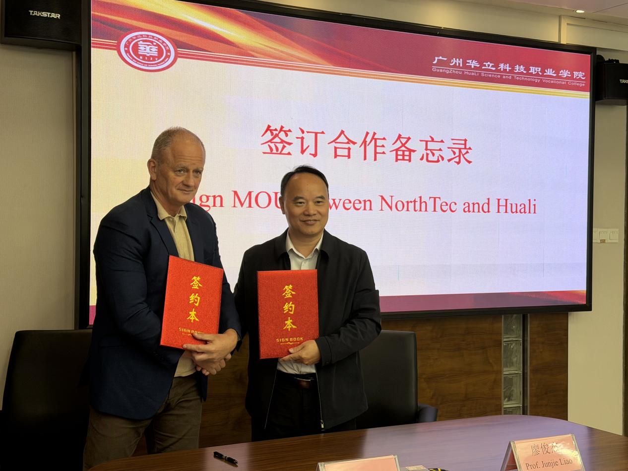 2025年12月3日,新西兰北方理工学院代表团团长Simon Harvey、NorthTec国际办公室负责人谭雪琴、广州华立科技职业学院校长廖俊杰,常务副校长马俊,教务处处长孙丽英及国际交流中心全体教职工出席。
