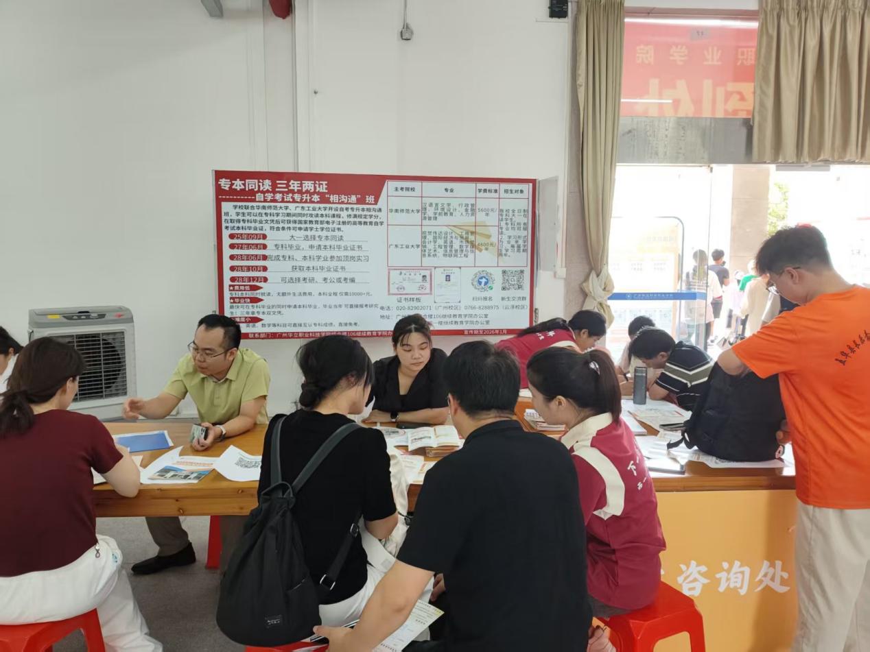 咨询现场,继续教育学院的老师们就学生和家长关心的“普通专升本”(又称“专插本”)和“自考相沟通专升本”两大项目进行了耐心细致的解答。老师们详细介绍普通专升本的特点,指其是全日制本科文凭,含金量高,但需通过统一入学考试,学习模式为“3+2”(三年专科+两年本科)。