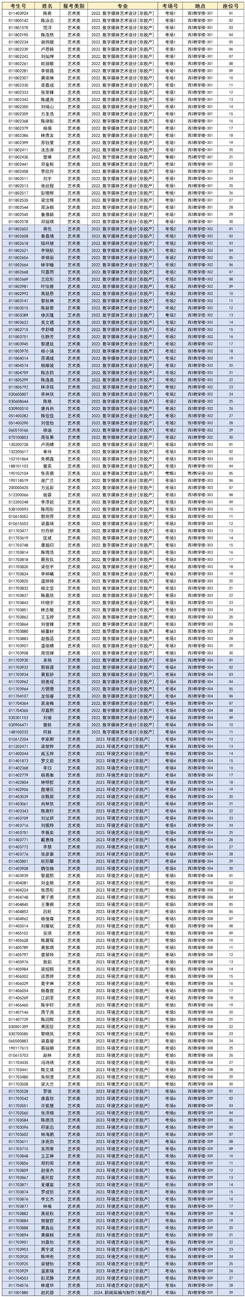 广州华立科技职业学院2025年成人高考艺术加试考场座位号安排表
