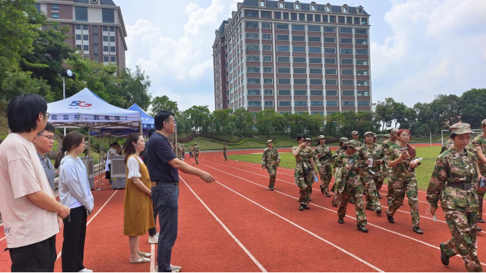 在国庆前夕,2024级新生军训汇报进入倒计时。教育学院组织教师团队前往四营进行考察,马岳良院长亲临现场为学生加油鼓劲。
