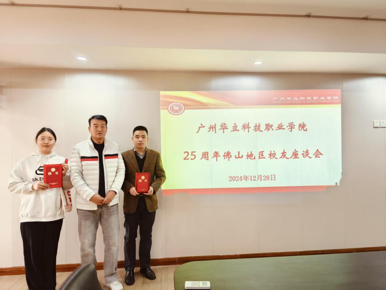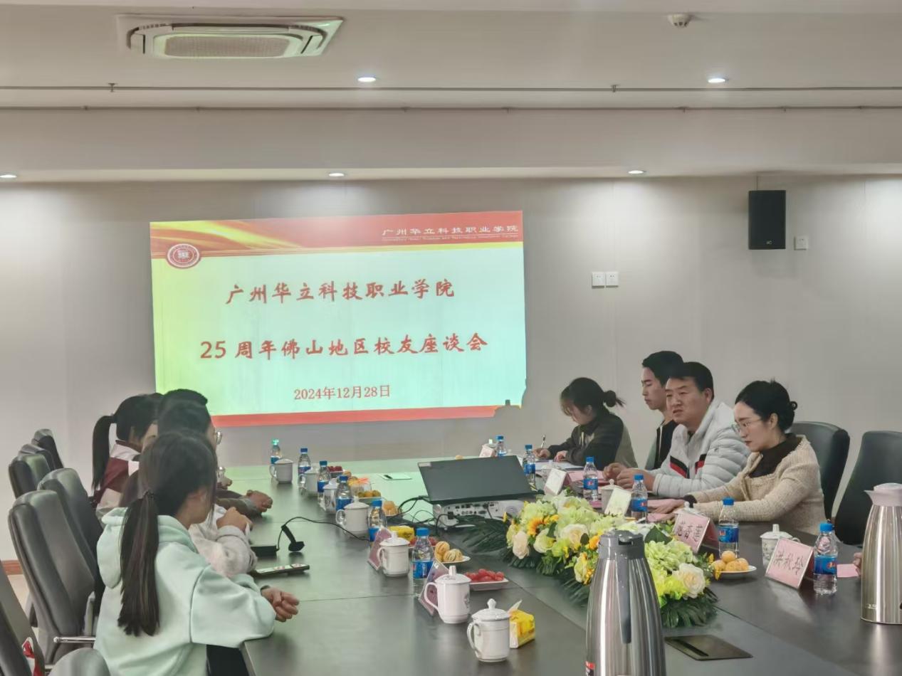 12月28日,广州华立科技职业学院教育学院院长马岳良率队赴佛山走访校友,并举行一场别开生面、向“新”奔跑的师生座谈会,共同见证广州华立科技职业学院建校25周年校庆佛山地区校友会的成立。