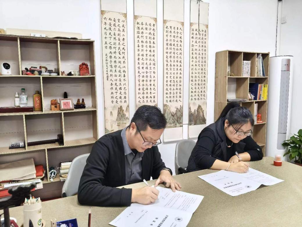 此外,我校还与优秀校友陈雨泽创办的鑫宇书画培训中心签订了校企合作协议。根据协议,双方将在人才培养、实习实训、科研合作等方面展开深度合作,共同推动产学研一体化进程。此次合作不仅为在校学生提供了更多的实践机会和就业渠道,也为校友企业的发展注入了新的活力。