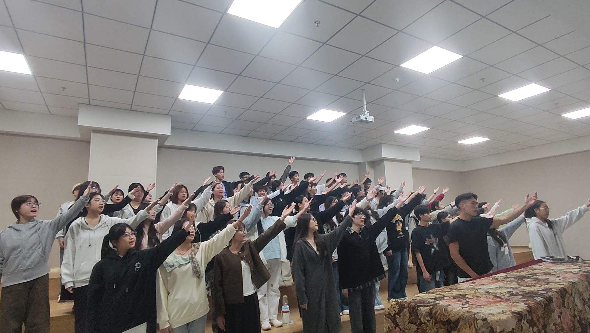 荣誉的背后,是近一个月以来师生们全力以赴的辛勤付出,投入了极大的热情。自接到比赛通知以来,教育学院高度重视,迅速组建师生合唱团。从选曲、编排到排练,每一个环节都凝聚了全体成员的心血与智慧。面对时间紧、任务重的挑战,队员们牺牲宝贵的休息时间,利用晚上及周末空档反复排练,克服了声音融合等难题。