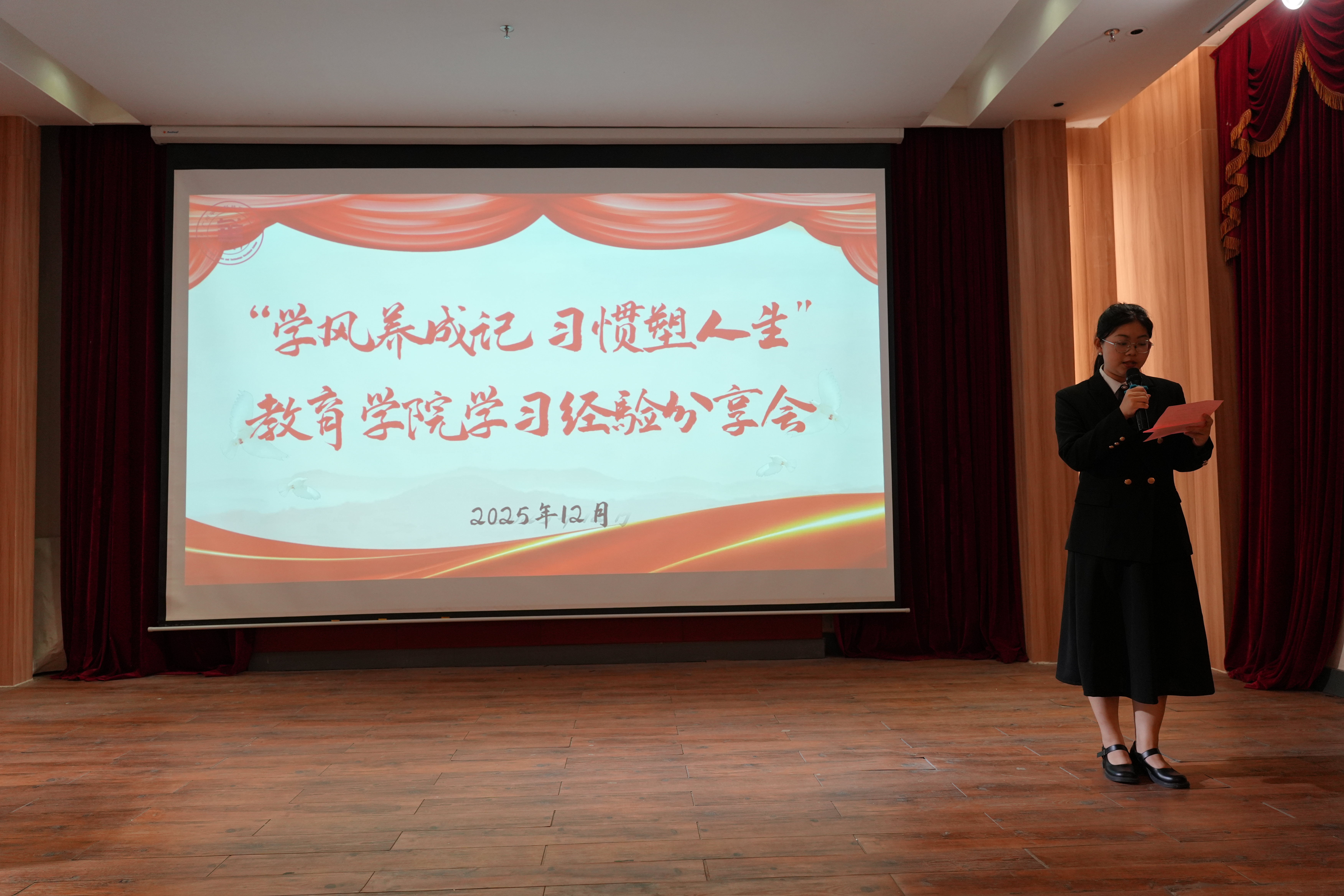 分享会在教育学院学管主任程豪老师及多位教师的支持下顺利举行。活动由主持人林雯媛开场,她强调了学习习惯对学业成就及个人综合素养提升的关键作用,为整场分享会奠定了积极向上的基调。